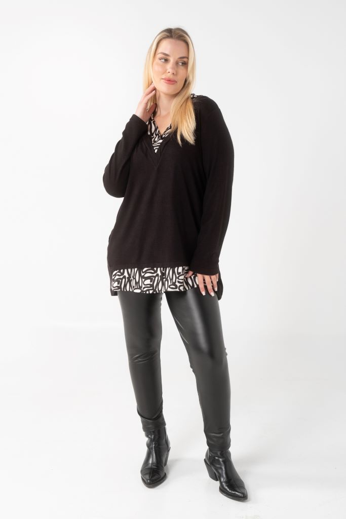 Knitted top in a very comfortable fit with printed band at the hem and neckline