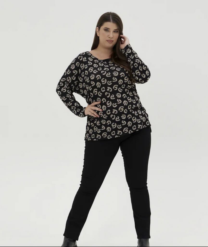 Knitted top in a straight line with geometric shapes