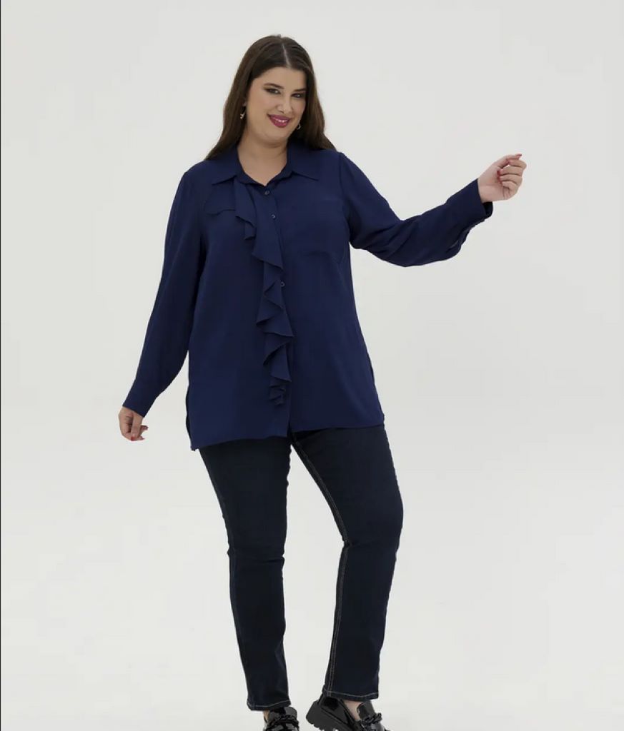 Πουκαμίσα μουσελίνα με βολάν σε πολύ άνετη γραμμή