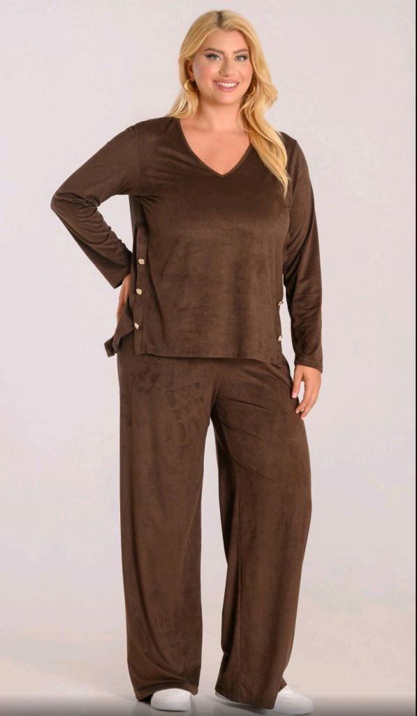 Set of suede top with button detail and pants with elastic waist