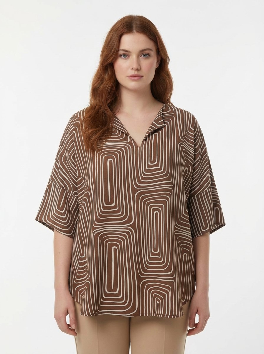 Μπλούζα με V, σταθερό ύφασμα και λευκά γεωμετρικά σχήματα