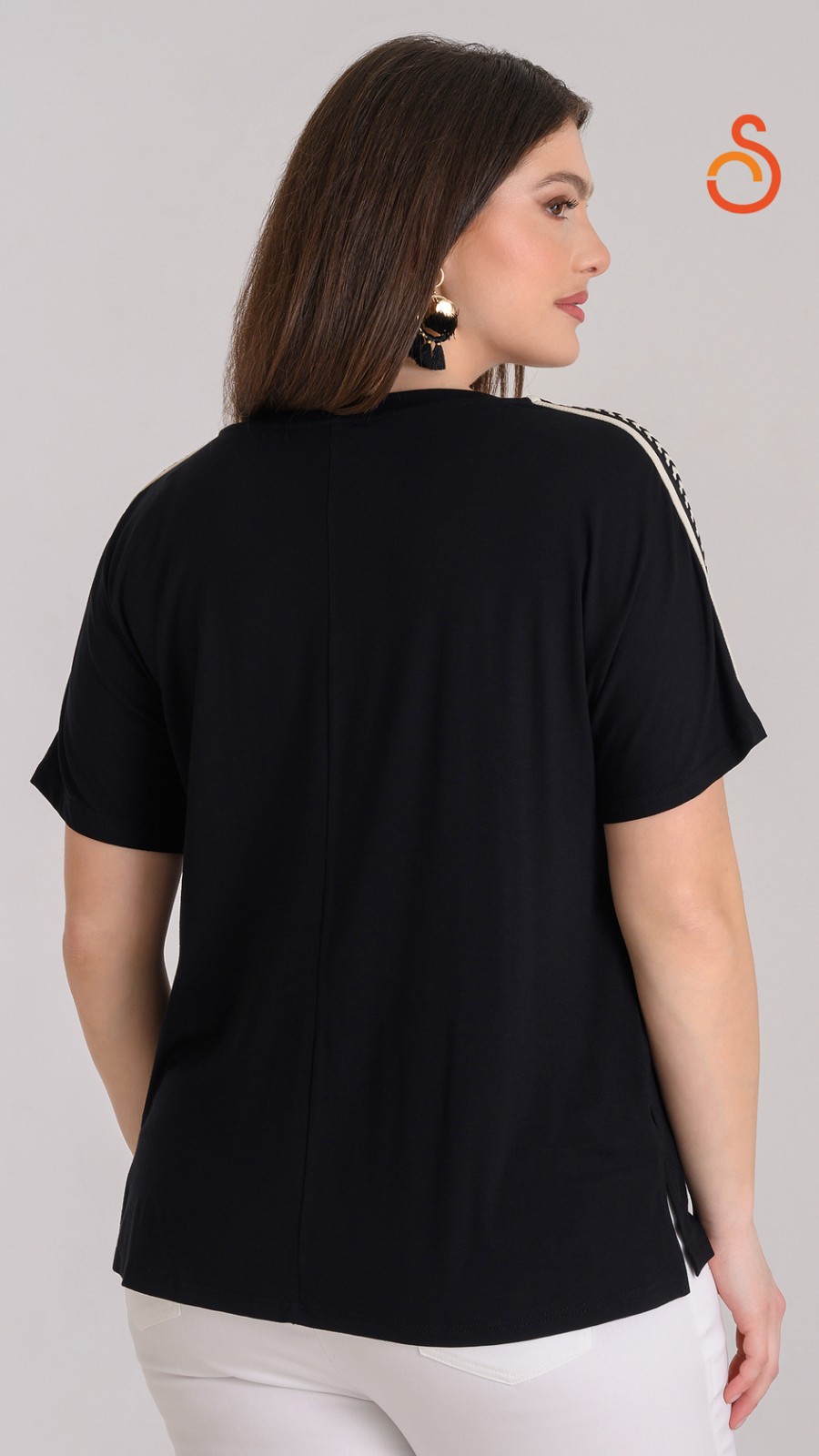 Μπλούζα βισκόζη, ανοικτή λαιμόκοψη με τρέσα στο μανίκι