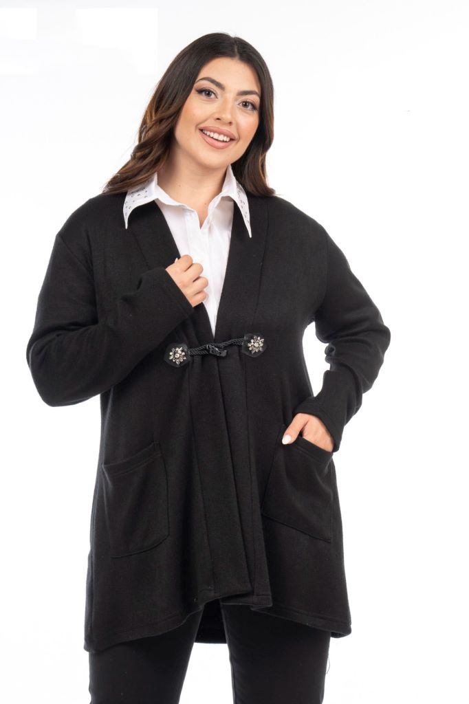 Μακρυά ζακέτα πλεκτή με τσέπες και κούμπωμα από χάντρες
