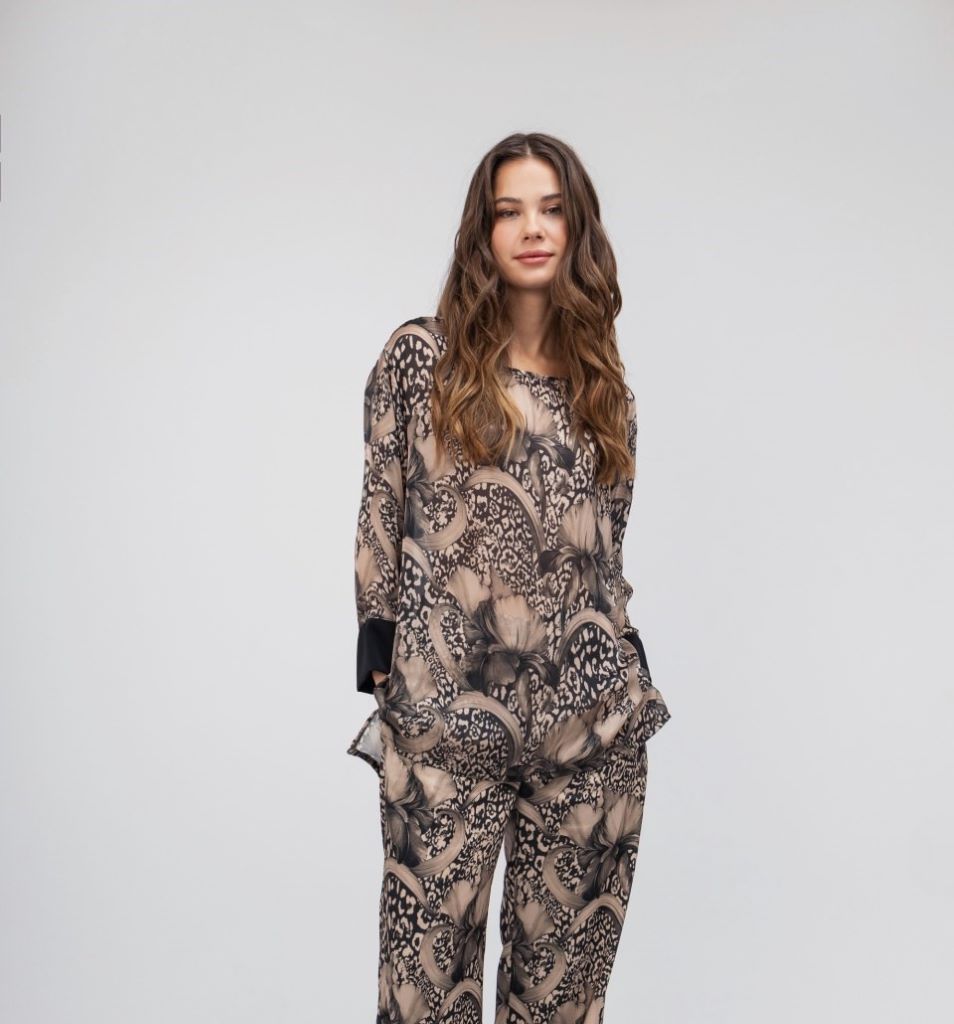Πουκάμισα εμπριμέ με δέσιμο στο ντεκολτέ