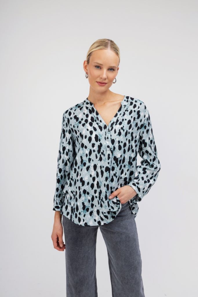 Πουκάμισο λεοπάρ με μαο γιακά σε ίσια γραμμή